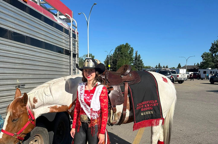 Sophia Cooper is the 2025 Pete Knight Rodeo Princess. She is 16 years old and lives in Rocky View County, Alberta on her family farm. She enjoys riding her horse, barrel racing, academics and spending time with her family and friends. Sophia has spent the last 6 years in 4-H with the Indus Silver Spurs, connecting with her horse, growing confidence in public speaking, volunteering in the community and expanding her riding skills. Since she was young, Sophia has had a love for animals and a passion for helping them. This passion helps drive her towards her goal of becoming a veterinarian. She has been extremely committed to her studies, as she believes good grades and hard work are of the utmost importance to achieve her goals. All of these hobbies and skills contribute to her goals of becoming a veterinarian and growing with her animals.